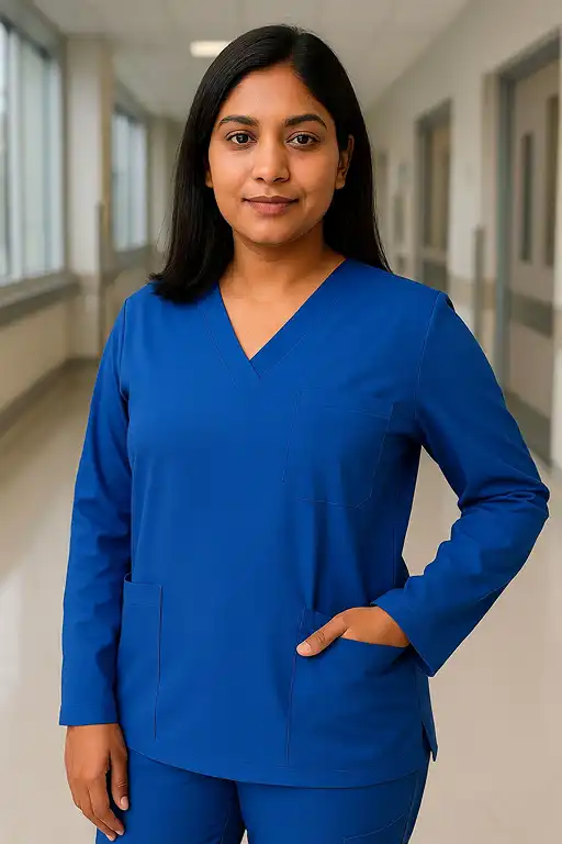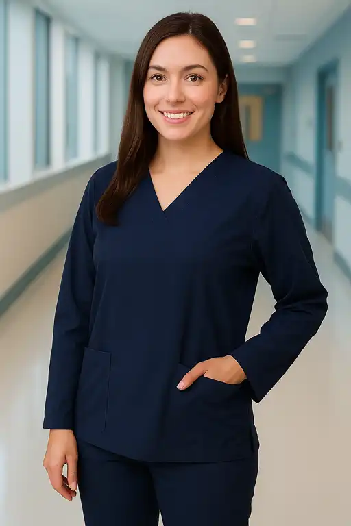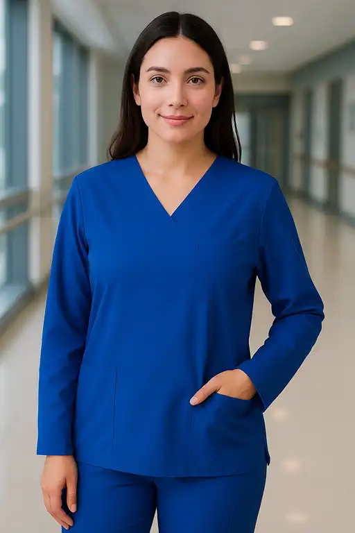 Engineered for performance and designed with precision, the Clinical Scrub Top combines clean aesthetics with all-day comfort. Made from a breathable 65% polyester and 35% viscose fabric, this full-sleeve top offers excellent airflow and softness. Ideal for both men and women, it features a tailored silhouette, practical side pockets, and durable construction—perfect for busy clinical environments. Personal embroidery available to add a touch of individuality.